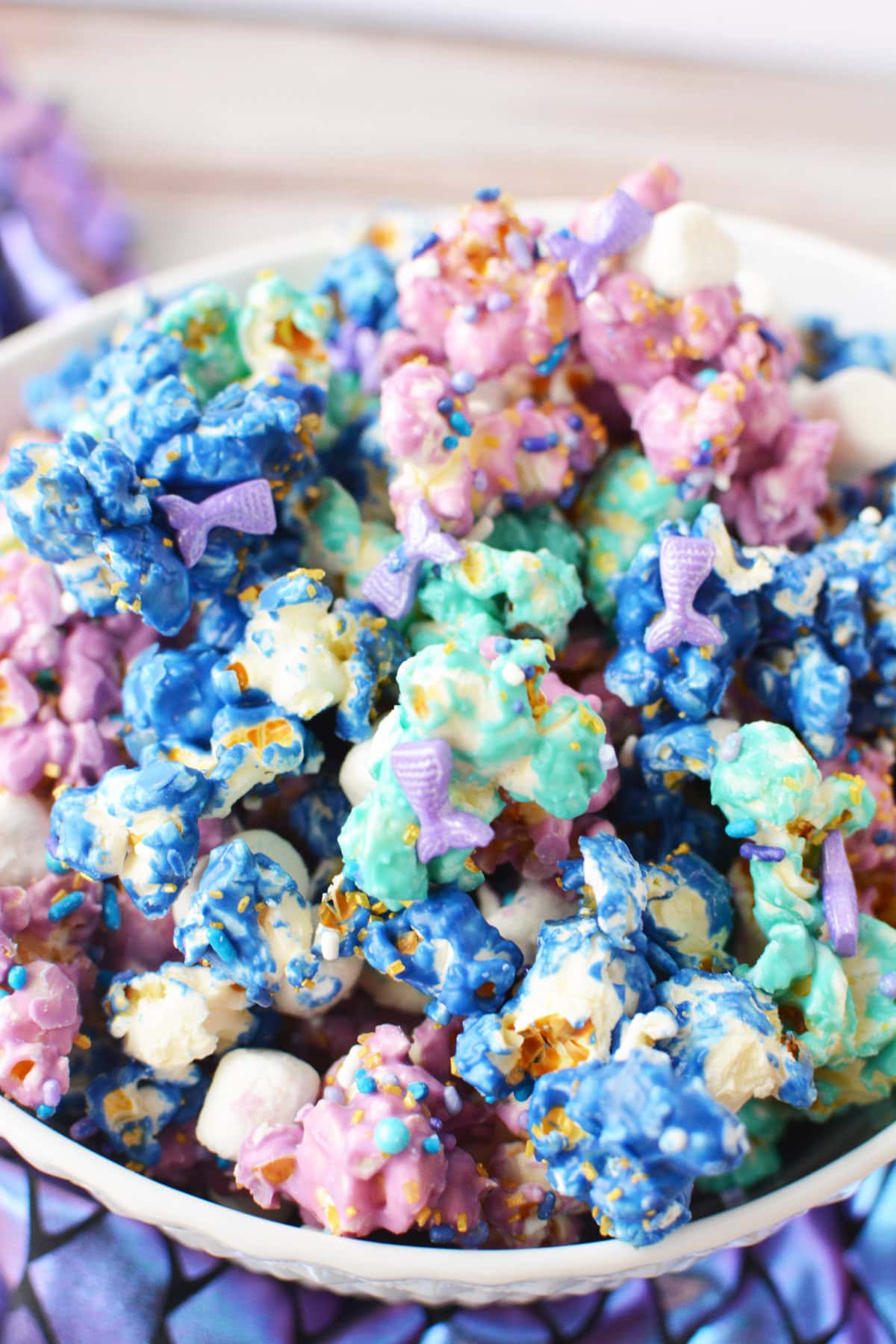 Ingredients – Popcorn – Lavender candy melts – Turquoise candy melts – Dark blue candy melts – Mini marshmallows – Mermaid sprinkles – Mermaid tail candies